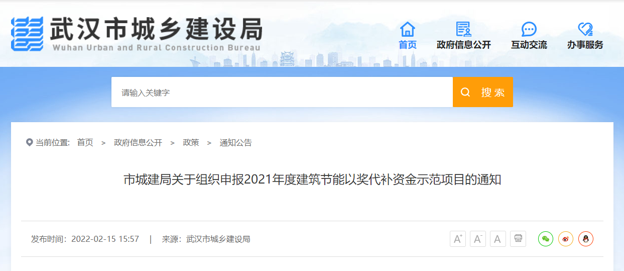 為加快推進生態(tài)文明建設(shè),落實綠色發(fā)展理念,提升建筑節(jié)能水平,根據(jù)《湖北省建筑節(jié)能以獎代補資金管理辦法》(鄂財建發(fā)〔2017〕37號)、《武漢市省級建筑節(jié)能以獎代補資金使用管理辦法》(武城建〔2020〕38號),決定開展2021年度建筑節(jié)能以獎代補資金示范項目申報工作,現(xiàn)將有關(guān)事宜通知如下: