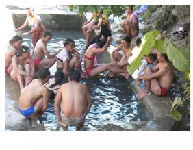 云南躍進橋溫泉風景澡堂會的熱水最高達70-80度,由于是自然溫泉,含有多種礦物質(zhì)和稀有金屬元素,對人體的某些疾患有特殊的療效,因而慕名前往洗浴的客人遠到西藏也不乏大有人在,只是現(xiàn)在的時間主要是周邊的人們,到三、四月份就會有更多遠方的西域者陸續(xù)到來。不少洗浴者一洗就是十天半月,更有甚者能洗兩到三個月,目的是治病,據(jù)說還真有不少人治好了疑難雜癥,不然的話怒江“澡堂會”怎么會在印度、尼泊爾、巴基斯坦、新加坡、馬來西亞甚至美國等地聞名遐邇。