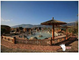 云南下關(guān)溫泉風(fēng)景明童軒《德勝關(guān)溫泉》詩云:蒸蒸本元氣,澡雪人爭浴。雖無澤物功,遠(yuǎn)勝貪泉屈。大理下關(guān)溫泉在山谷之中,背依附者摩山,峭石噻巖壁立,面臨大理西洱河岸,河水洶涌奔騰;庭院之中,設(shè)有大理亭閣游廊,遍植花木,四季花香,環(huán)境幽雅,景色宜人,下關(guān)溫泉是人們休假療養(yǎng)的場所。